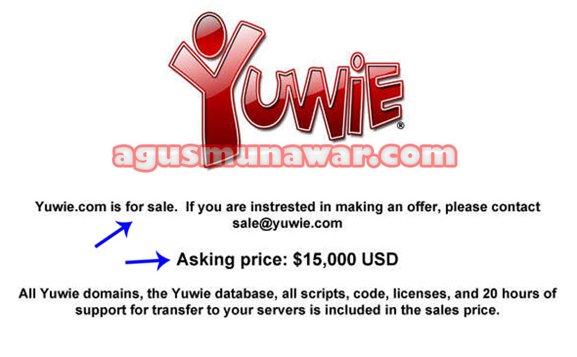 Situs tersebut dijual seharga $15.000 USD. Ya bagi Sobat yang berminat silahkan ajukan penawaran via email ke sale@yuwie.com .